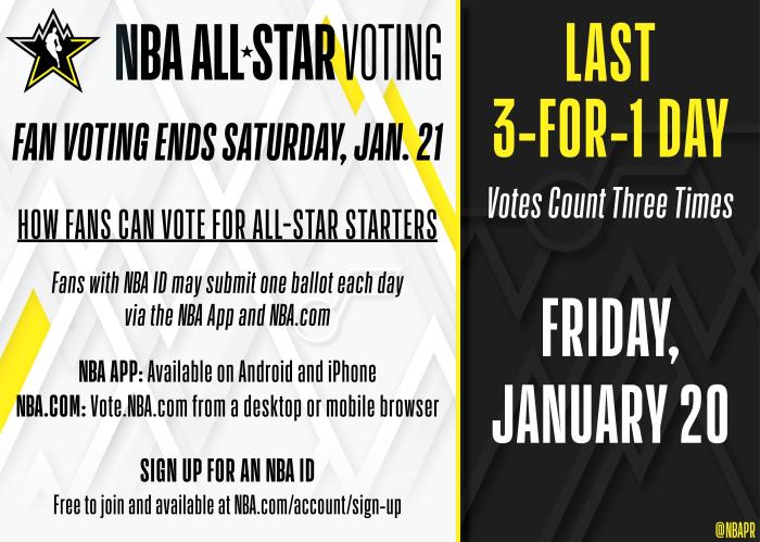 联盟官方还公布了有关全明星的一些时间点:1月22日中午12点:全明星球迷投票截止;1月27日上午8点:通过TNT直播陆续公布东西部队长和全明星首发名单。