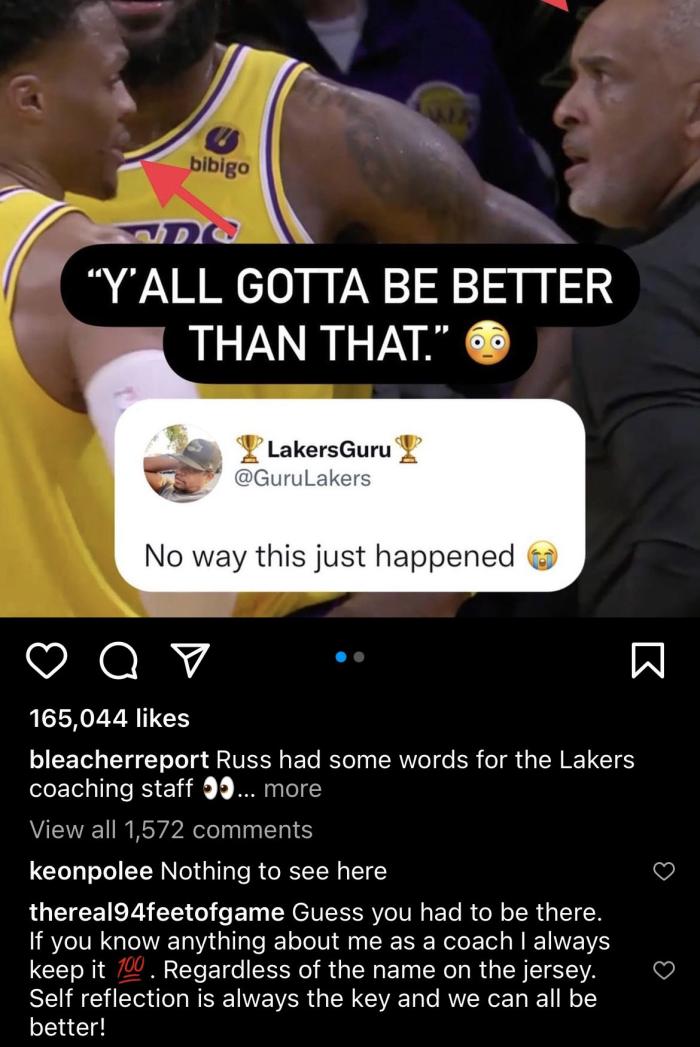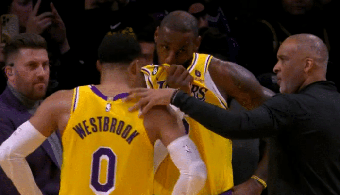 揭秘湖人场边争执:詹姆斯上前安抚两人 威少回应不是吵架助教也发声