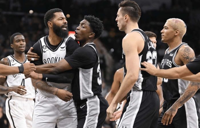对于这一次意外事件,最终裁判吹罚索汉一级恶意犯规,大莫里斯吃到技术犯规,其他人都没事,马刺罚球1次(技术犯规罚球),篮网罚2球(恶意犯规罚球),篮网拥有球权。