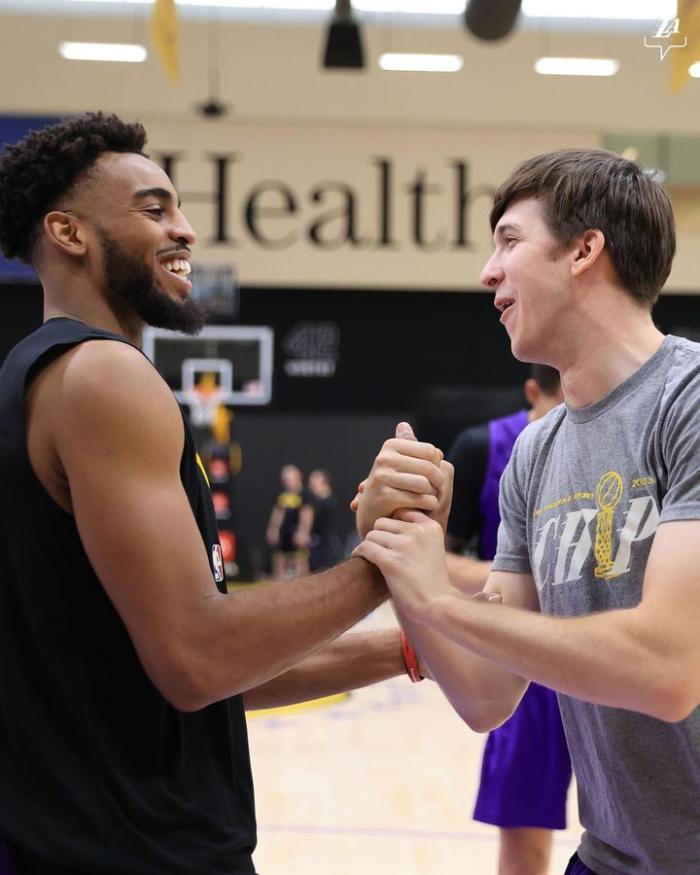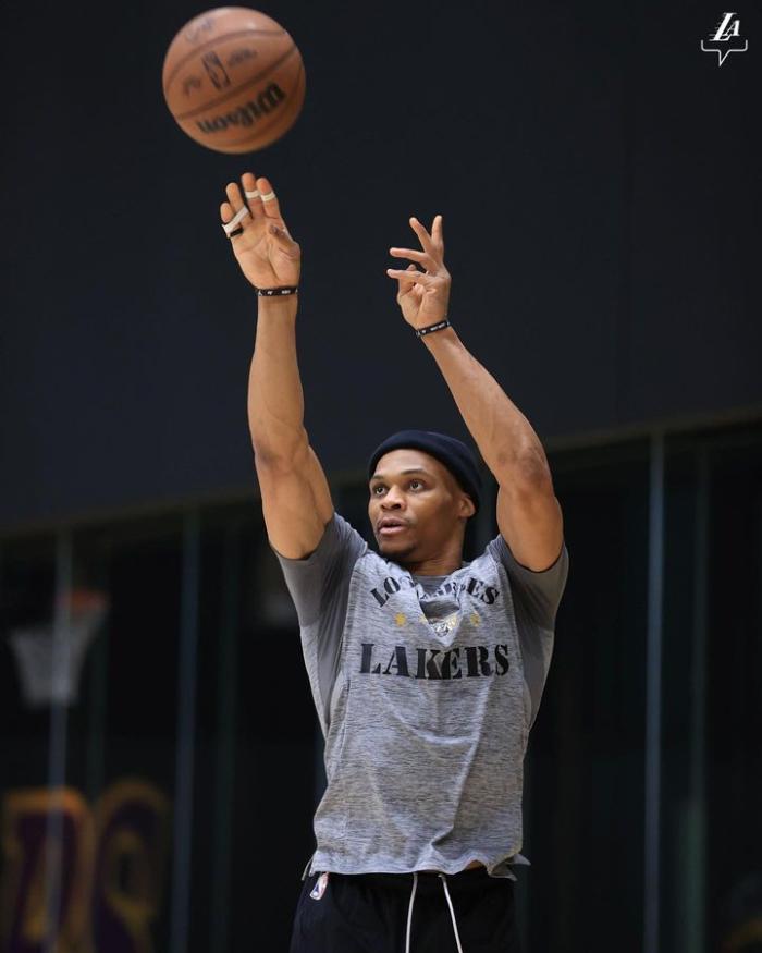 另外,湖人官方晒出备战独行侠的现场照,威少戴着一顶黑色针织帽,投篮时目光如炬;里夫斯和特洛伊-布朗握手并且开怀畅聊;加布里埃尔、10天临时工斯特林-布朗等人都参与训练。