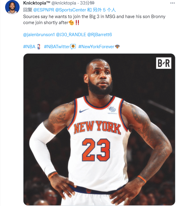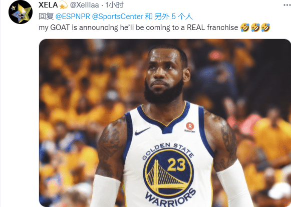 ESPN官方为一段球员专访特意发布媒体公告是很罕见的行为,如此声明引热议,美媒hoops表示外界希望詹姆斯今天向湖人提前离队申请;球迷们纷纷晒P照,希望詹姆斯加盟自家主队;有球迷希望詹姆斯加盟勇士,有球迷希望詹姆斯加盟尼克斯,篮网媒体转发报道并调侃:我将把天赋带到布鲁克林。