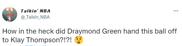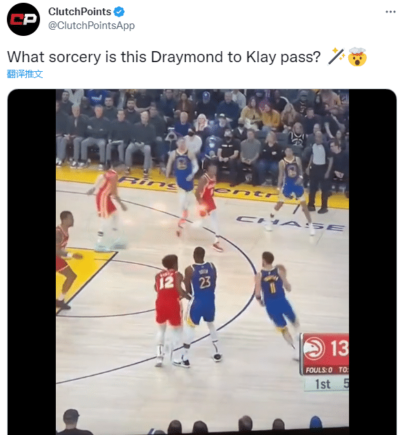 在勇士和老鹰第一节,迪温琴佐运球过半场后把球传给德拉蒙德-格林,格林拿球后为汤普森挡拆,克莱绕掩护并且接球就投;美媒质问:究竟是格林是如何霸气传给汤普森的?ClutchPoints表示格林用了什么魔法才把球传给汤普森的。