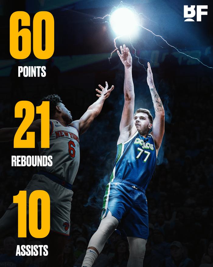东契奇面对尼克斯31投21中轰下60分21篮板10助攻,成为历史第一位拿到60+20+10三双的球员,比当年的哈登更疯狂;之后面对马刺,东契奇又砍下51分。