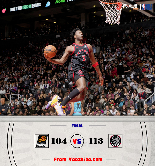 JRS直播网12月31日讯 NBA常规赛,太阳客场挑战猛龙。太阳目前西部第六,猛龙在东部倒数第五。布克和范弗里特都不打。上半场,开场阶段双方势均力敌,比分咬得很紧,猛龙持续发力打出12-3取得领先,太阳内外开花回敬13-2反超比分,猛龙连中三分,半场战罢猛龙53-51领先2分。下半场,猛龙占得先机打成13-4的攻势取得两位数领先,保罗得分助攻一肩挑带队追赶,末节双方争夺陷入白热化,关键时刻猛龙内外开花连续拿分锁定胜局。