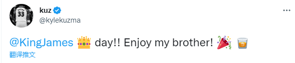 库兹马晒昔日合影,发推写道:詹姆斯生日快乐,享受吧,我的兄弟。