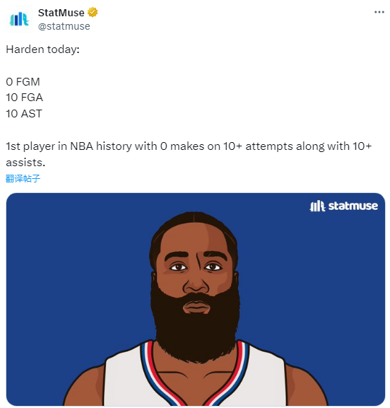 小卡32分扛起进攻大旗,哈登的手感冰凉,全场10投0中一分未得,不过登哥送出5次助攻,还有5篮板2帽1断,哈登创奇葩历史纪录,哈登成为NBA历史上第一位至少出手10次全部不中却送出10助攻的球员。