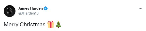 赛后,哈登晒照并且祝大家圣诞节快乐。