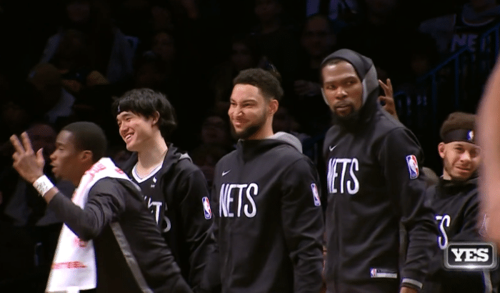 篮网大胜勇士狂刷纪录 替补席搞笑一幕:杜兰特庆祝却被助教向后拽