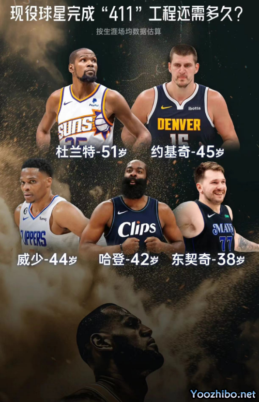 现役球星达成411需要多久?杜兰特需打到51岁 再证詹姆斯的伟大