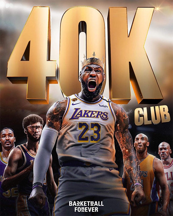 未来的每一场比赛,詹姆斯都将继续刷新NBA历史得分纪录。