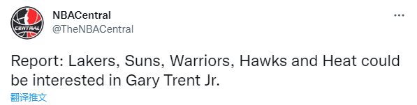 据BR记者Eric Pincus报道,太阳、湖人、勇士、老鹰和热火多支球队有意猛龙球员特伦特,猛龙不愿意留下特伦特,他们可能将围绕特伦特进行小规模交易。