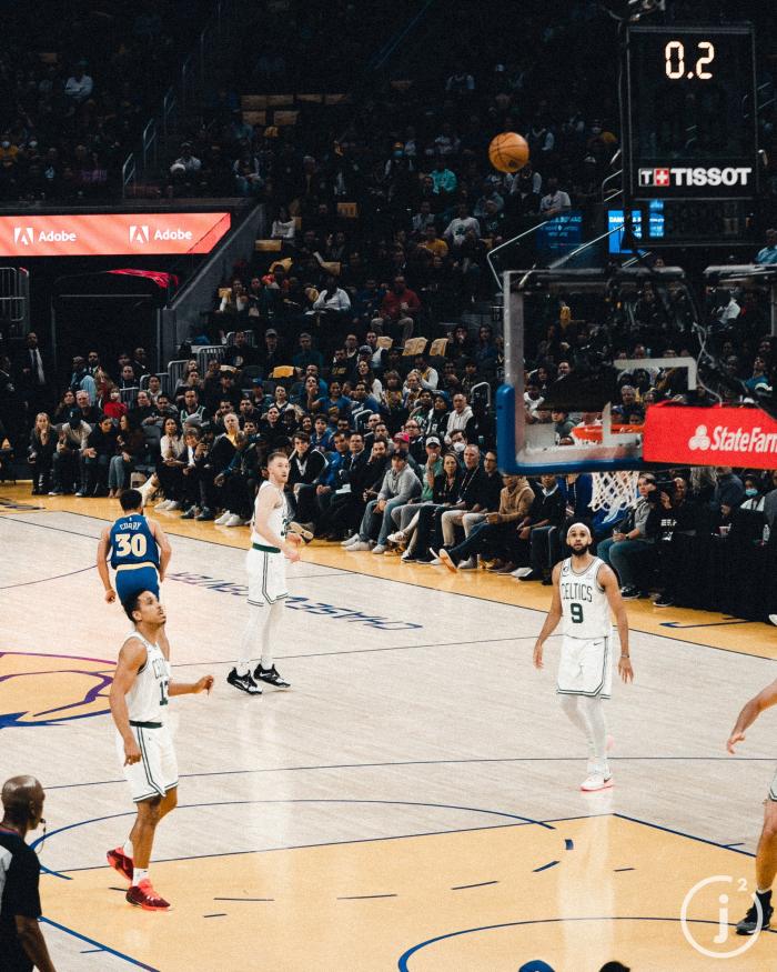 末节,勇士领先到17分,随后斯玛特和布朗轰进三分,绿军10-2反扑打停勇士;勇士反击格林扣篮止血,怀特两罚全中,克莱中投打铁,卢尼二次进攻得手,之后大帽斯玛特,3分49秒,库里兜出来再中三分,勇士领先到15分,绿军继续追分,库里中投回应,克莱关键上篮,1分52秒两队换下主力,格威把球扔到观众席直接被驱逐离场。