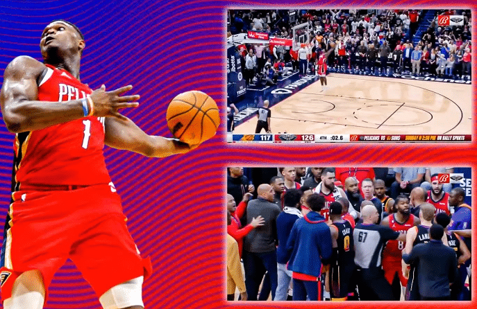 鹈鹕和太阳比赛最后时刻,保罗上篮不进后,小南斯抢到篮板并且长传给锡安,胖虎大秀360度转体劈扣,之后保罗和阿尔瓦拉多起争执,双方球员和主帅围成一团,现场十分混乱,所幸冲突及时被制止了。