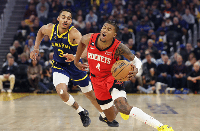 比赛正式开打,卢尼强硬得分并且造犯规,可惜罚球没进,之后格林投进勇士队本场第一记三分,维金斯突破上篮,格林禁区拦截马丁,库里助攻维金斯轰进三分,之后普尔轰进追身三分,维金斯助攻卢尼,勇士15-2打停火箭之后库里外线开火,迎着防守强投三分,连续命中底角三分,穆迪三分也有,勇士第一节39-23领先火箭16分。