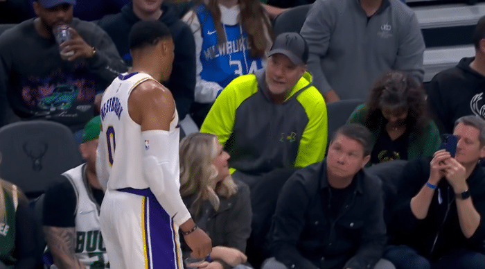 威少被激怒:与雄鹿球迷发生口角小冲突 现场保安第一时间劝阻