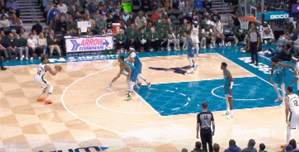这场比赛的字母哥表现强势,他半场投篮10中8,拿下19分,尤其是在第二节初期,字母哥运球过半场,黄蜂的球员直接收缩到内线,不防守外线的字母哥,很显然是不惧怕字母哥的三分球,毕竟这也不是他的强项。字母哥看到没人防守,抬手命中三分球,惩罚对手。