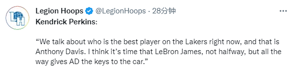 帕金斯还表示:我们不能用手指着哈姆或者威少(推卸责任),目前谁是湖人队内最佳球员?是安东尼-戴维斯,在最近的比赛中他场均能得到32分16篮板。我们一直都期待有联盟前五天赋的浓眉能够真正进入到联盟TOP5的讨论中,詹姆斯是时候将湖人这辆车的钥匙全程都交给浓眉了。