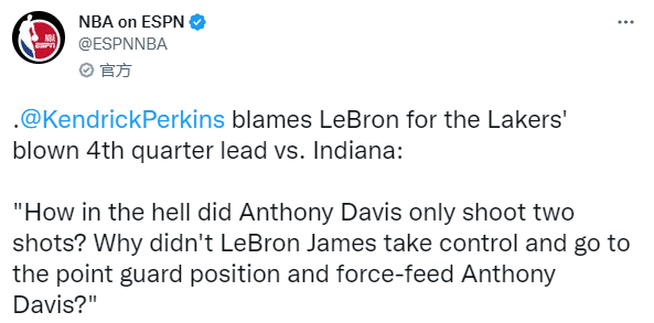帕金斯把湖人遭绝杀的责任归咎于詹姆斯,为什么浓眉末节只出手2次?为什么詹姆斯不给浓眉喂球?