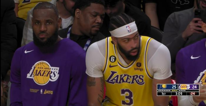 第二节,浓眉在进攻端发力,单节独砍14分火力全开,詹眉多次连线点燃球馆;此节詹姆斯底线滑翔上篮,以及接浓眉助攻完成空接暴扣,上半场最后时刻,詹姆斯助攻施罗德投进压哨三分。