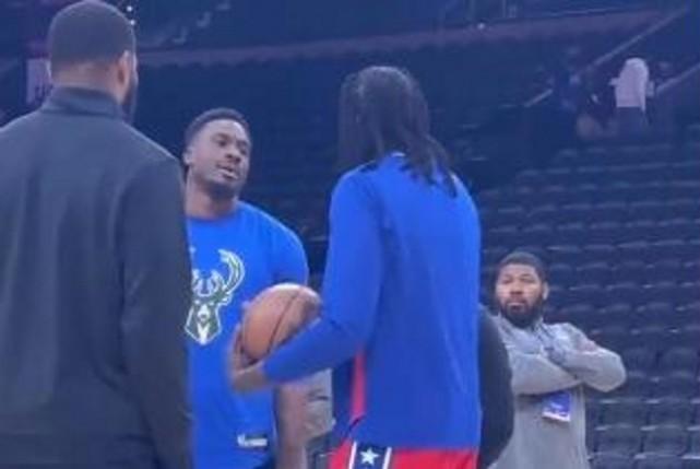 字母哥的哥哥试图去和哈雷尔沟通,两人又发生了口角,把fxxk字眼挂在嘴边。字母哥只能再次回到更衣室,又拿了一个球,去场地另外一边训练。但他发现76人工作人员已经架起了梯子,字母哥误会对方是故意干扰自己训练,而且刚才也受了哈雷尔的一肚子气。