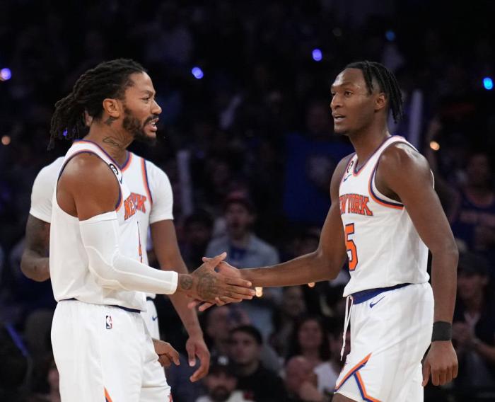 据名记Shams报道,尼克斯愿意将德里克-罗斯和奎克利摆上货架,此举是为了解决球队后卫过多的问题。