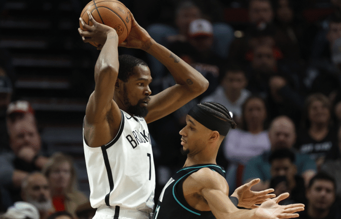 末节,杜兰特杀到禁区摔出底线仍打成2+1,之后暴扣虐筐,篮网和开拓者打得十分僵持,渡边关键轰进三分打停开拓者;最后3分多钟,开拓者执行砍人战术,渡边雄太再次立功,31.8秒杜兰特撞倒格兰特吃到进攻犯规,杜兰特两罚一中,杜兰特犯规被努尔基奇打成2+1,杜兰特错失绝杀但奥尼尔绝杀,最终篮网惊险拿下胜利。