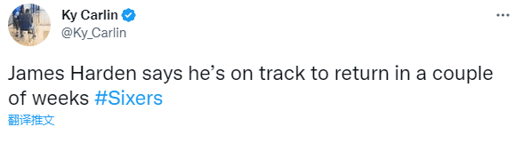 哈登还表示他的感觉很好,一切都在按计划进行,最近一直在泳池内训练,预计再过几周就能回归。