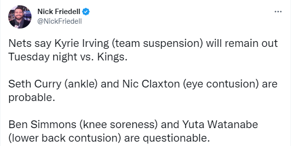 篮网宣布欧文仍被禁赛:渴望归队但遥遥无期 独行侠对西蒙斯没兴趣