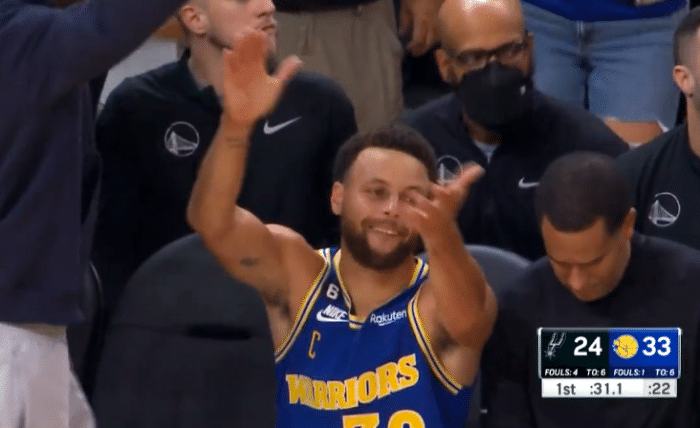 勇士半场领先16分:普尔11投19分点燃球馆 库里为他鼓掌庆祝