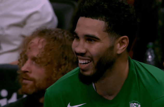塔图姆43+10连刷纪录:比手势嘲讽菜鸟 带队豪取6连胜咧嘴大笑