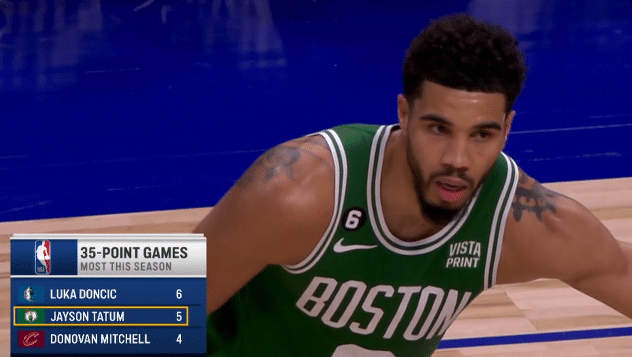 2、塔图姆赛季第5次单场轰下35+,仅次于东契奇排在赛季第二多