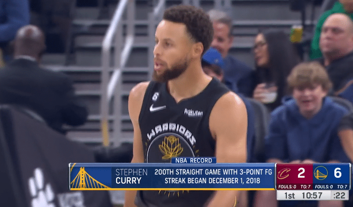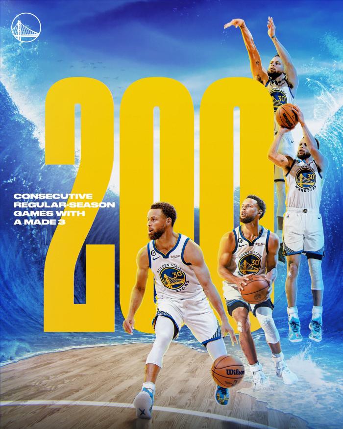 来源:JRS直播网11-12 16:06JRS直播网11月12日,NBA常规赛勇士击败骑士,库里全场出战34分钟23投15中、三分11中6拿到40分4篮板5助攻,末节库里坐场边扭动大笑,最后78秒连得10分统治比赛,疯狂庆祝点燃球馆,全场高呼MVP;库里又迎来里程碑时刻,常规赛连续200场投进三分继续刷新历史第一纪录。
