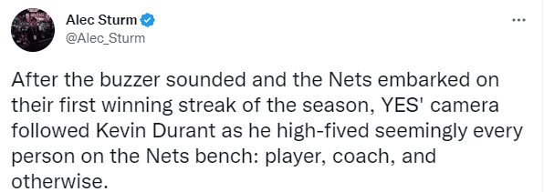 篮网官方则是晒杜兰特庆祝视频庆祝胜利,终场前32.6秒杜兰特投进关键球后,他和渡边雄太击掌并且蹦蹦跳跳走回替补席,满眼杀气太霸气。