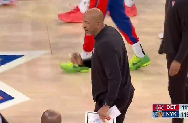 此时比赛只剩下18秒,活塞领先1分,完全可以叫出暂停稳定一下,但主帅蒙蒂威廉姆斯似乎睡着了。而戏剧性的一幕发生了,格莱姆斯将球传给丰泰基奥时,被哈滕抢断,但哈滕的传球被活塞汤普森抢断。只是汤普森撞上迪温琴佐,被布伦森抢断,之后传入禁区,哈特篮下强打命中,并且制造犯规!尼克斯112-111反超。此时,全场欢声雷动。