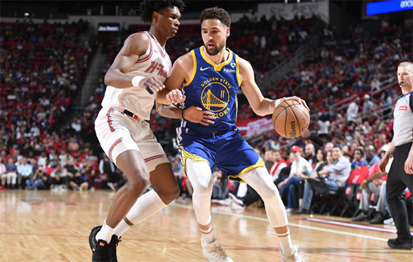 第二节,克莱延续火热手感,急停后仰中投、外线再中三分以及单打翻身后仰得分,克莱连得7分对飚火箭;克莱下场休息后,库里连续冲击内线;暂停回来,小史密斯和杰伦-格林8-3缩小分差,克莱回来就命中三分;火箭继续反扑,库里迎着狄龙轰进不讲理三分,TJD扣篮,维金斯吃饼上篮,佩顿准压哨补篮,勇士9-0稳住局面,领先15分进入下半场。