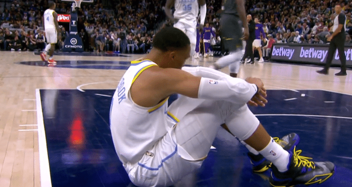 第一节7分28秒,威少替补上场,进攻端3次出手全部打铁不中,禁区上空篮遭篮筐拒绝,不过这一球威少的鞋被踩掉,唐斯从背后推倒了威少,这球应该吹罚唐斯犯规,可裁判未吹罚;暂停时,威少找裁判谈说法;防守端,威少表现不错,抢断、盖帽全都有。