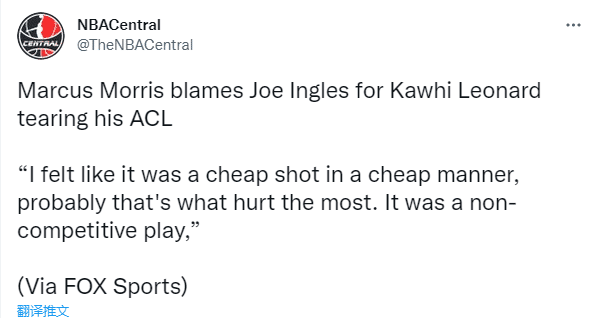 不久前,快船悍将小莫里斯谴责英格尔斯撞伤小卡的膝盖,小莫认为在这样的攻防回合中,英格尔斯不该伤人,这不是一个充满碰撞和竞争的回合。