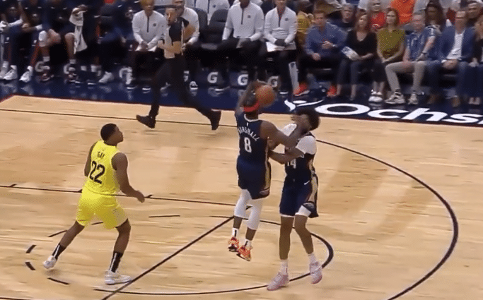 英格拉姆伤退后,锡安在末节遭遇伤病,大帽克拉克森后鹈鹕反击,锡安想要扣篮却被克拉克森大帽干扰,锡安失去平衡从空中重摔倒地,躺在地板上痛得乱打滚;之后锡安坐回替补席,末节关键时刻和加时赛,锡安都没有重返赛场。