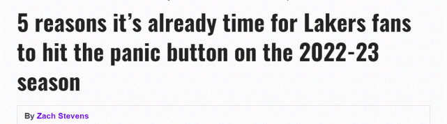 来源:JRS直播网10-23 21:53JRS直播网10月23日,2022-23赛季刚开始,湖人遭遇两连败,暂列西部倒数第一。美媒Lakers Daily悲观地认为湖人这个赛季又没戏了,并列出了五条理由——