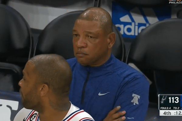 76人三连败引热议:里弗斯一脸沮丧 赛后恩比德拥抱马刺助教