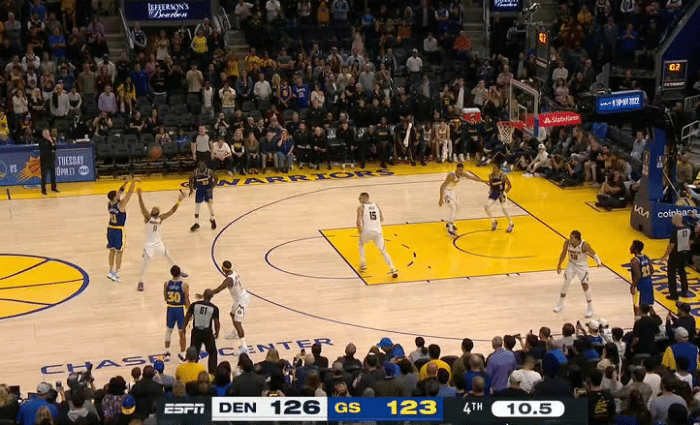 这场比赛双方鏖战到了最后时刻,无奈输球的是勇士一方,其实他们是有机会的,但可惜比赛中浪费良机。转折点出现在最后2分钟,当时勇士落后掘金5分,同时还有球权,可以说形势很好,看到翻盘的希望。