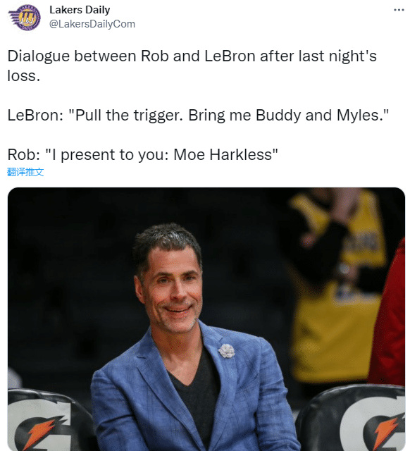 湖人媒体Lakers Daliy恶搞湖人不敌快船后詹姆斯与佩林卡对话,发推写道:詹姆斯说:赶紧交易(威少),为我带来希尔德和特纳;佩林卡说:我向你介绍莫里斯-哈克莱斯。