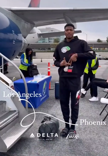 目前湖人众将已经飞往菲尼克斯,詹姆斯登机时穿着红色拖鞋、戴着针织帽亮相;浓眉拖着行李箱;海斯与工作人员击拳,八村垒和丁威迪比出手势;湖人众将集体出征客场,根据赛程,湖人将在明天凌晨4点30分大战太阳,此前4次交手,湖人3胜1负。