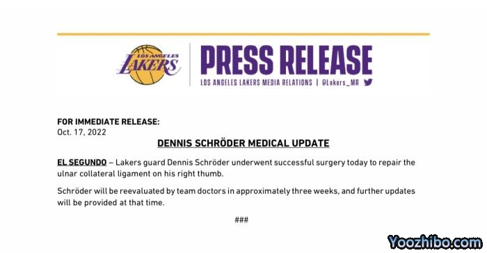 专家详解施罗德伤情:平均缺席24场 术后伤停4-6周远超湖人预期