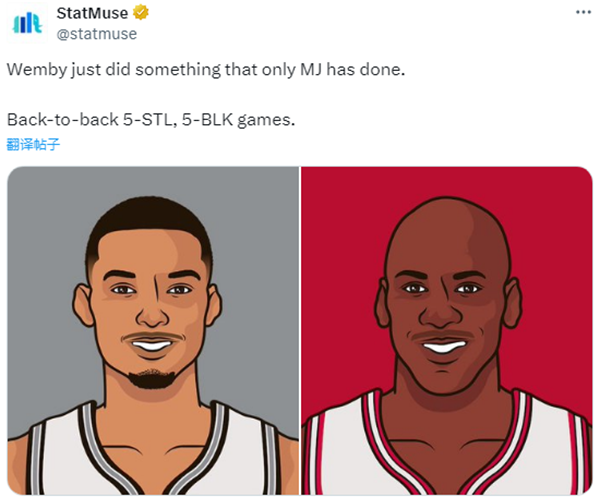 4、文班比肩乔丹成为史上第二位连续2场至少5帽5抢断的球员