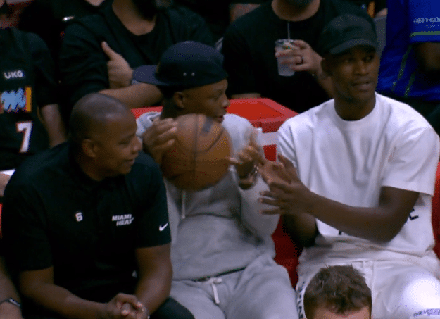 第二节,杰伦-格林和小波特继续砍分,不过热火疯狂反扑,下起三分雨并且打出18-6的超级攻势反超比分,见状小波特和格林回应三分,然而半场打完火箭落后1分;期间小波特上演单臂战斧劈扣。