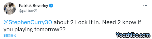 来源:JRS直播网10-09 11:32JRS直播网10月09日, NBA季前赛湖人客场对阵勇士的前一天,湖人新援贝弗利公开约战库里,发推写道:@库里,我准备好专注于比赛了。需要知道的是你明天打不打?