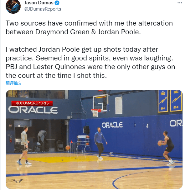 据美记者Jason Dumas报道,他证实了格林和普尔之间的冲突,全队训练结束后普尔回到球馆加练,精神状态很好,而且还露出笑容。