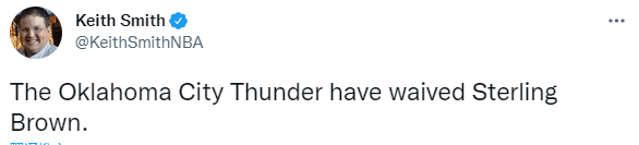 雷霆官方宣布,球队已正式裁掉后卫斯特林-布朗;今夏斯特林-布朗已经连续三次换队,先是在伍德交易中被独行侠送到火箭,之后又在火箭与雷霆8人大交易中被送到雷霆,如今他被裁暂时失业。