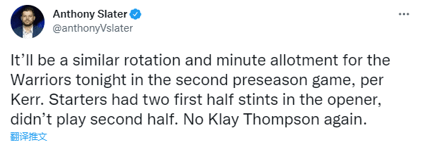 今日赛前,科尔表示第二场季前赛的球员轮换和时间分配和第一场相似,库里等首发球员依旧只打上半场,这意味着库里本场比赛的数据已经定格了。